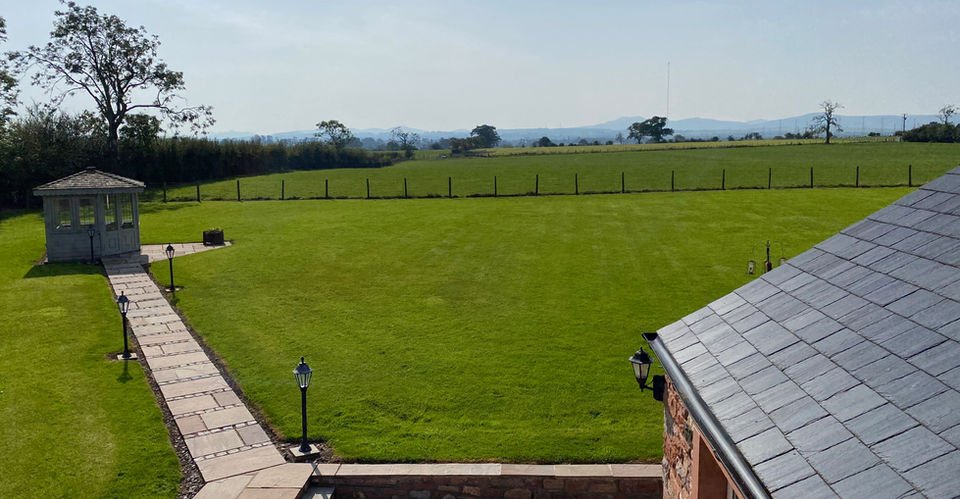 One side the cottage sits alongside the driveway to the estate, with the other side of the cottage surrounded by extensive gardens, private patio with external lighting and stunning views over the fields to the Lake District.